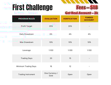 We offer a range of trading challenges designed for traders of all levels. Pick the one that suits your goals and experience, prove your strategy and start trading with real capital.